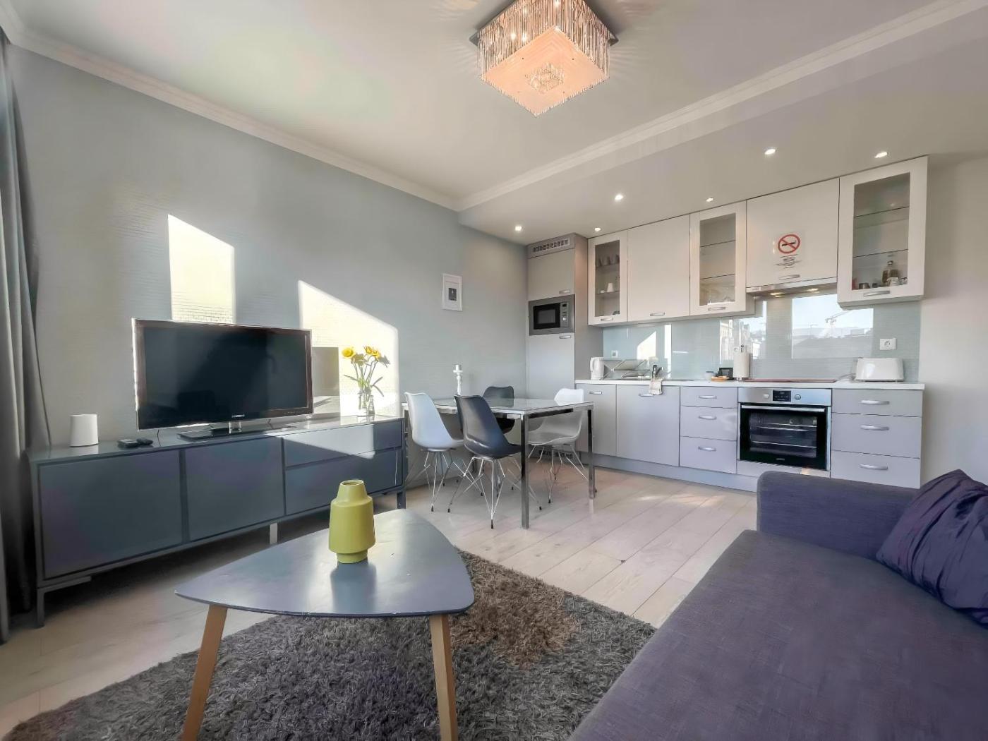 Two-Bedroom Apartment. This spacious apartment consists of 1 living room, 2 separate bedrooms and 2 bathrooms with a shower and free toiletries. The apartments kitchenette is available for cooking and storing food. The air-conditioned apartment provides a flat-screen TV, a washing machine, a private entrance, a wardrobe as well as city views. The unit offers 3 beds.