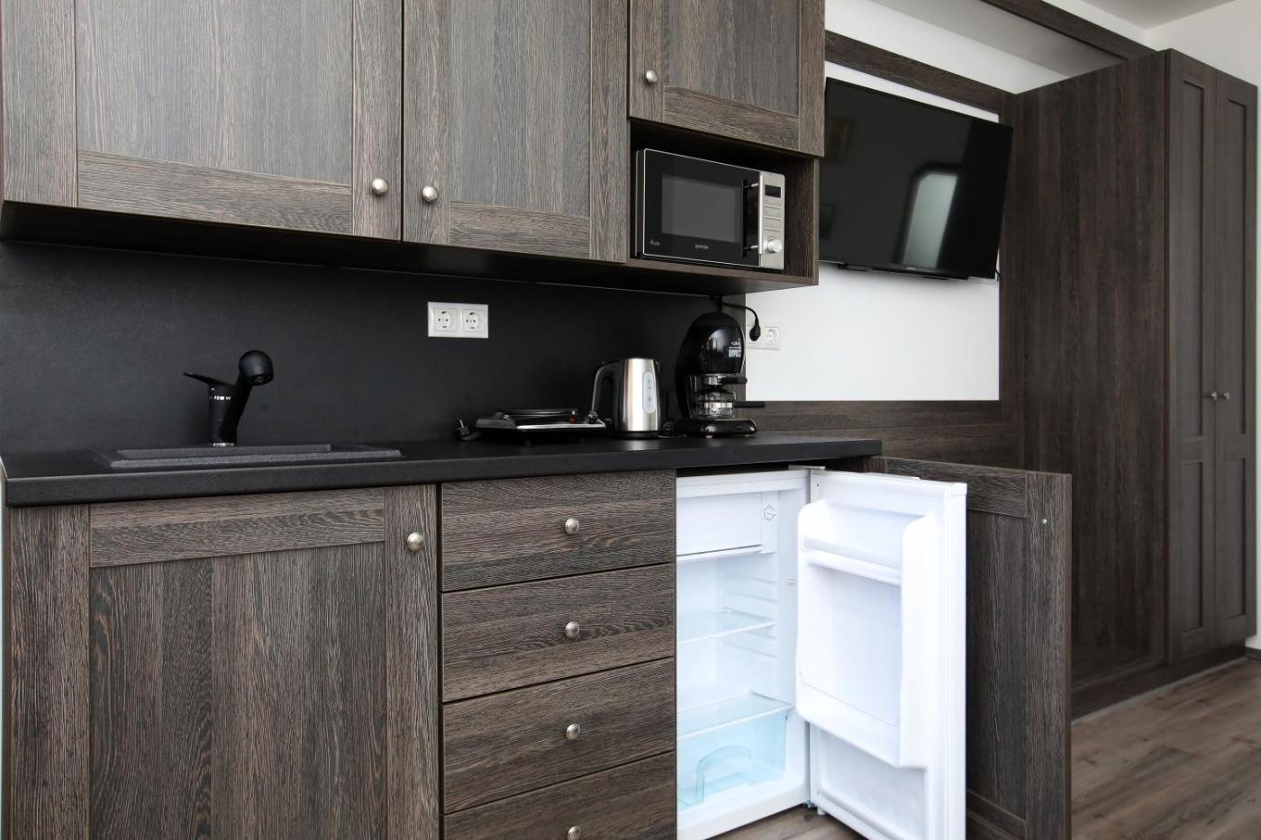 Deluxe Apartment. Featuring a private entrance, this air-conditioned apartment comprises a kitchenette, 1 bedroom and 1 bathroom with a shower and a hairdryer. Guests will find a stovetop, a refrigerator, kitchenware and a microwave in the fully equipped kitchenette. The apartment also provides guests with a barbecue. Boasting a terrace with garden views, this apartment also provides a coffee machine and a flat-screen TV with cable channels. The unit offers 1 bed.